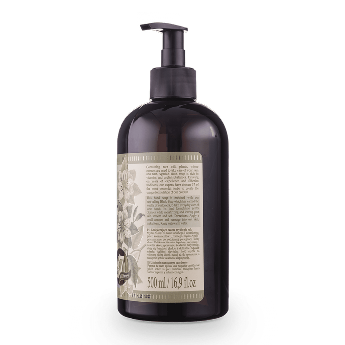 To mydło zostało stworzone w oparciu o tradycyjne receptury zielarki Babuszki Agafii w trosce o lepszą kondycję skóry dłoni. Unikatowa siła ziół zawartych w formule to zasługa surowego klimatu dzikiej i nieskazitelnie czystej Syberii. Mydło do rąk na bazie lubianego i docenionego przez konsumentów czarnego mydła Babuszki Agafii jest przeznaczone do codziennej higieny i pielęgnacji skóry dłoni. Delikatna formuła łagodnie oczyszcza i nawilża skórę, sprawiając, że dłonie stają się bardziej gładkie i delikatne. Kosmetyk zawiera unikalną kompozycję 37 syberyjskich ziół.